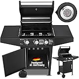 Juskys Gasgrill Louisiana 3 Brenner 8,1 kW – BBQ Grillwagen mit Deckel, Grillrost & Warmhalterost, Grill mit Thermometer, Seitenablagen & Abdeckplane